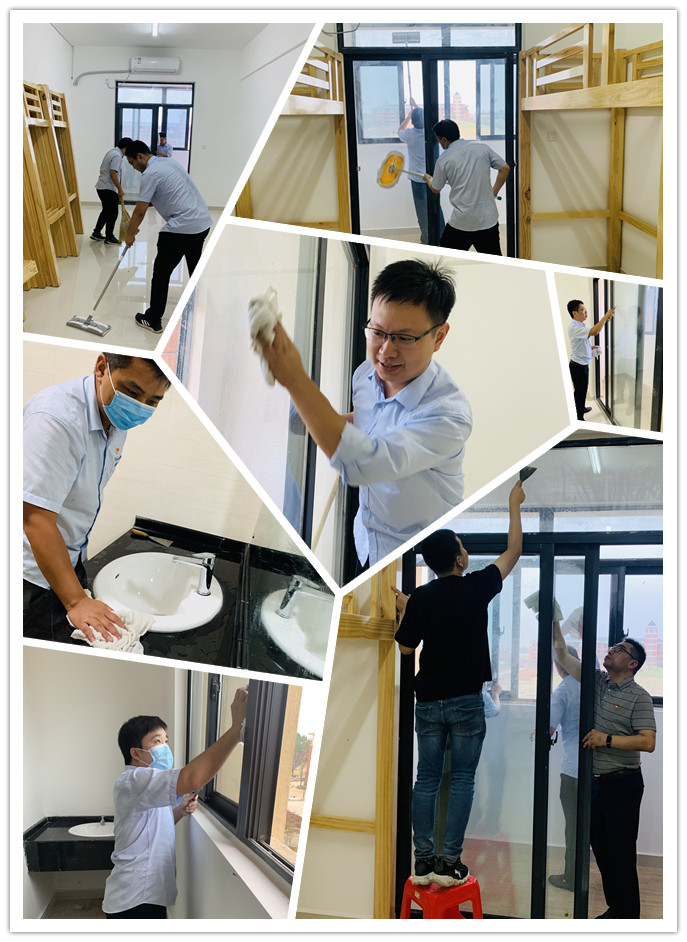 8月28日至29日,四分公司黨支部組織所屬機關和項目黨員25人前往六安一中項目開展衛生大掃除,對高一、高三兩棟教學樓進行開荒保潔。