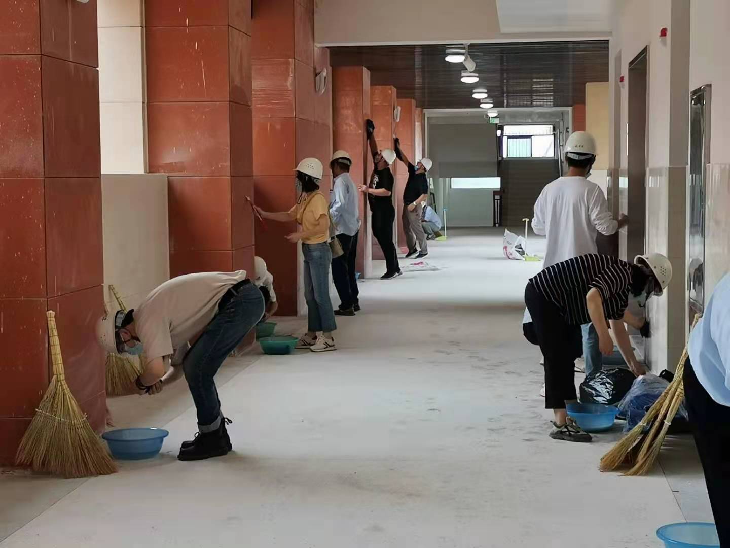 活動中,大家有的清掃樓道,有的撿拾雜物,有的擦洗墻面,有的鏟除膠漬,現場一片忙碌景象。經過大家的辛勤勞動,樓道、教室、場館被打掃得干凈整潔。雖然滿身灰塵,衣服濕透,但大家都很有成就感。