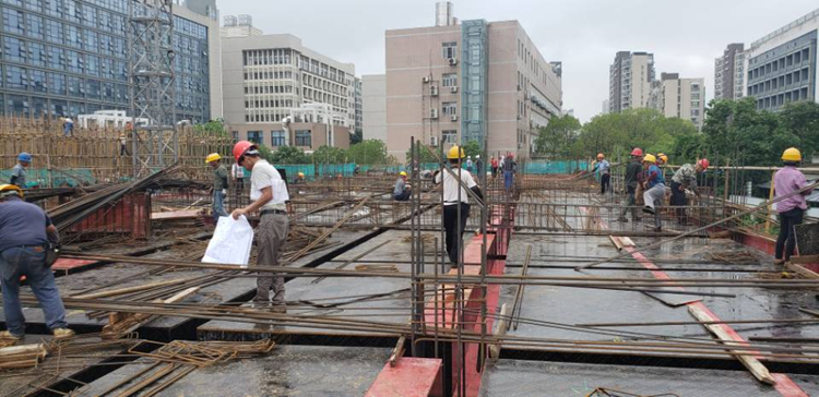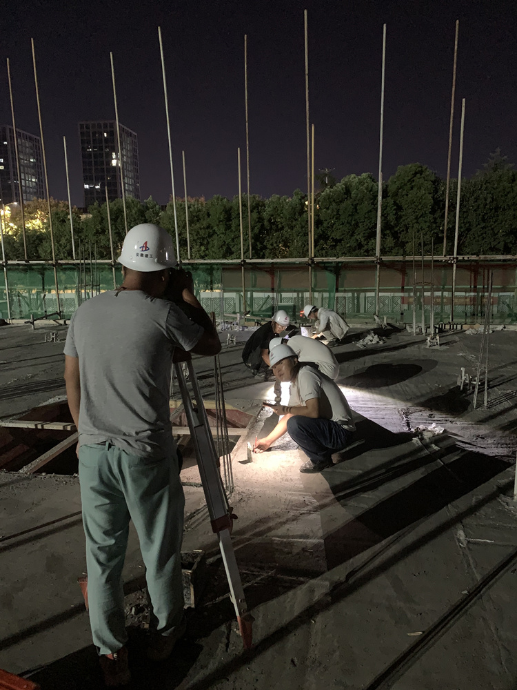 由于25、26兩天大雨影響以及本層為懸挑層導致施工進度滯后,2021年8月29日至30日,蕪湖中醫(yī)院項目鋼筋工工人加班加點頂著炎炎烈日大面積的鋪設(shè)住院樓梁板鋼筋,確保了8月31日完成三層結(jié)構(gòu)混凝土澆筑工作。9月17日,為了硬化現(xiàn)場的一塊場地為施工材料的周轉(zhuǎn)和堆場提供空間,現(xiàn)場管理人員與工人一直工作至凌晨5點,圓滿完成任務(wù),大大減少了因材料堆場周轉(zhuǎn)等問題導致的現(xiàn)場工作開展緩慢的問題,為現(xiàn)場搶工期提供了有力的幫助。標志著現(xiàn)場生產(chǎn)進度將再上一個臺階。9月18日,項目部一天時間里完成了考試樓、住院樓的一層外圍擋土墻砌筑工作,鋼筋與木工緊隨其后完成鋼筋綁扎與支模工作,第二天便完成格構(gòu)柱與壓頂?shù)臐仓ぷ鳎瑸橹苓吇靥钔粒瑘龅赜不A得足夠的時間。9月21日中秋佳節(jié),項目部全體員工堅守項目上奮力搶工期節(jié)點。