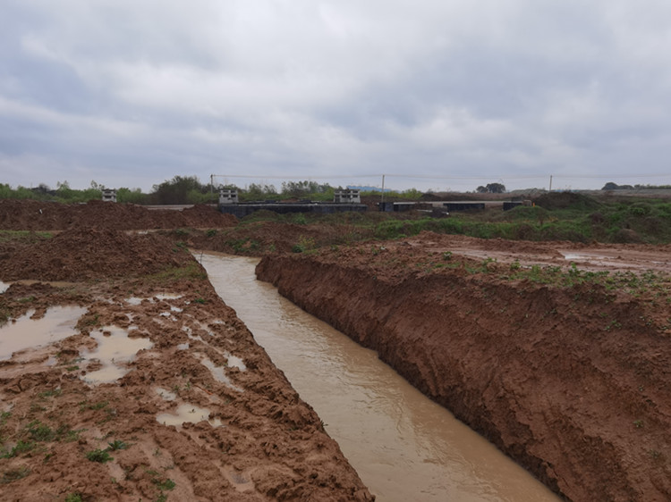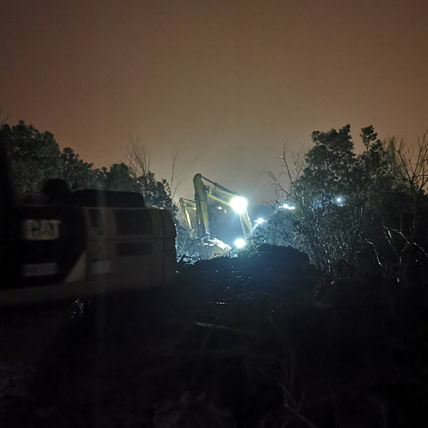 3月20日風(fēng)雨交加的夜晚,花崗鎮(zhèn)董崗健康驛站西側(cè)周邊的安徽三建12臺挖掘機(jī)機(jī)臂上的燈徹夜亮著,30多名職工經(jīng)過一夜艱苦鏖戰(zhàn),順利將董崗健康驛站西側(cè)河塘(原韓塘泄洪溝區(qū)域)積水引流至肖小河左支流下游,解決了花崗鎮(zhèn)董崗健康驛站可能面臨的積水內(nèi)澇風(fēng)險。