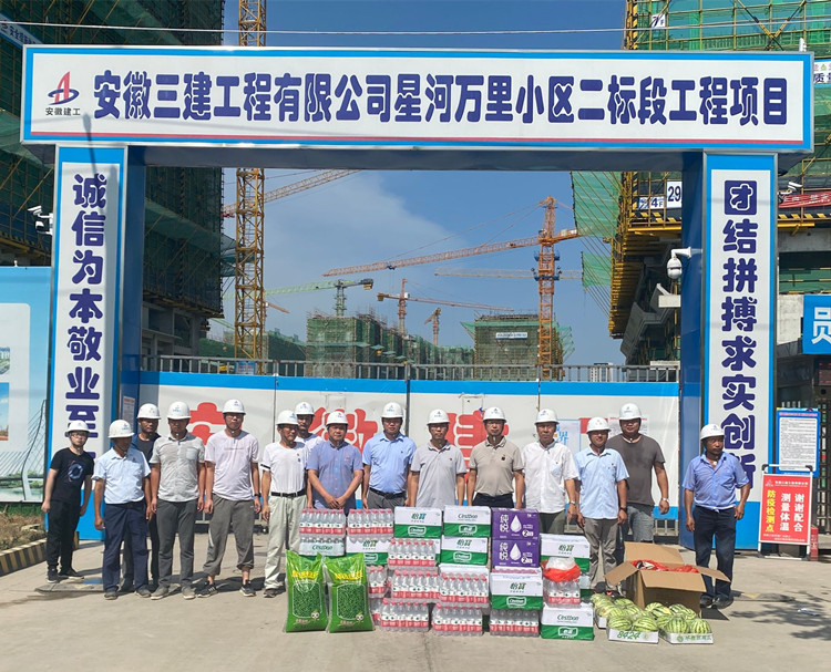 炎炎夏日,揮汗如雨。為保障項(xiàng)目一線員工的身體健康,確保全體員工全身心投入到安全生產(chǎn)工作中,7月13日上午,四公司領(lǐng)導(dǎo)班子及質(zhì)量、安全科科長(zhǎng)到蕪湖星河萬(wàn)里項(xiàng)目開展了“送清涼”慰問活動(dòng)。