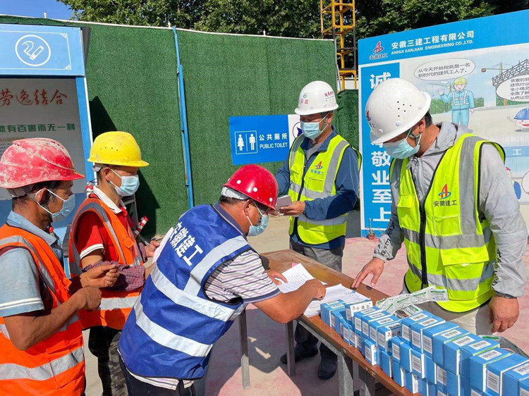項(xiàng)目部為現(xiàn)場(chǎng)工人發(fā)放防暑降溫藥品