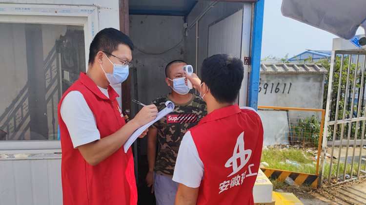 全體黨員沖鋒在前,恪盡職守,在這段特殊的日子里,他們凝心聚力,眾志成城,全面落實各項防控工作任務。一是強化組織領導統一指揮,疫情初始,立即成立疫情防控工作領導小組,落實防控應急預案,召開疫情防控工作部署會議共計4次;二是全面落實防控措施,深入到每個班組,每個工人,收集摸排人員信息,簽訂防疫承諾書,發放防疫物資。設置防疫管控點1處,全覆蓋摸排1018人,簽訂承諾書1018份,發放口罩10000余個。有序組織全員參加核酸檢測1次,抗原試劑檢測2次。疫情期間蔬菜糧油等日常必需品成了頭等難題,項目黨員先鋒隊積極聯系配送人員統一采購,為生活區工人發放;三是深入開展宣傳教育,了解每個工人心態,做好情緒安撫工作,充分利用流動喇叭,微信群,宣傳單等形式,廣泛宣傳有關疫情防控政策措施,提高工人自我防護意識。