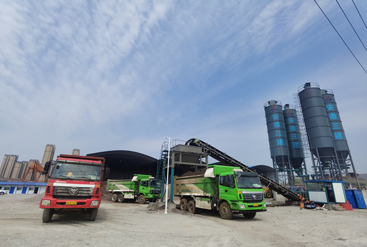 該站引進(jìn)一套WBZ800環(huán)保型水穩(wěn)拌合設(shè)備,配備配合比全自動(dòng)電腦控制系統(tǒng)、無人值守地磅稱重系統(tǒng)、全自動(dòng)無接觸車輛沖洗系統(tǒng),以及4個(gè)高度超過20m,總?cè)萘繛?00T的水泥罐。