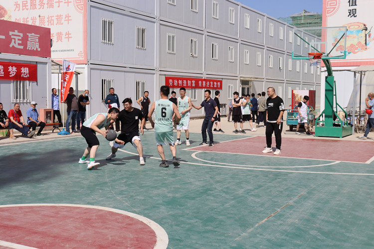 4月30日下午三時整,業主單位、監理單位、項目指揮部、安質部及各工區主要負責人參加了活動啟動儀式,隨后,北京公司總經理吳孫柏與北京雙圓監理總監范衛勝一起拋球,籃球比賽正式開打!