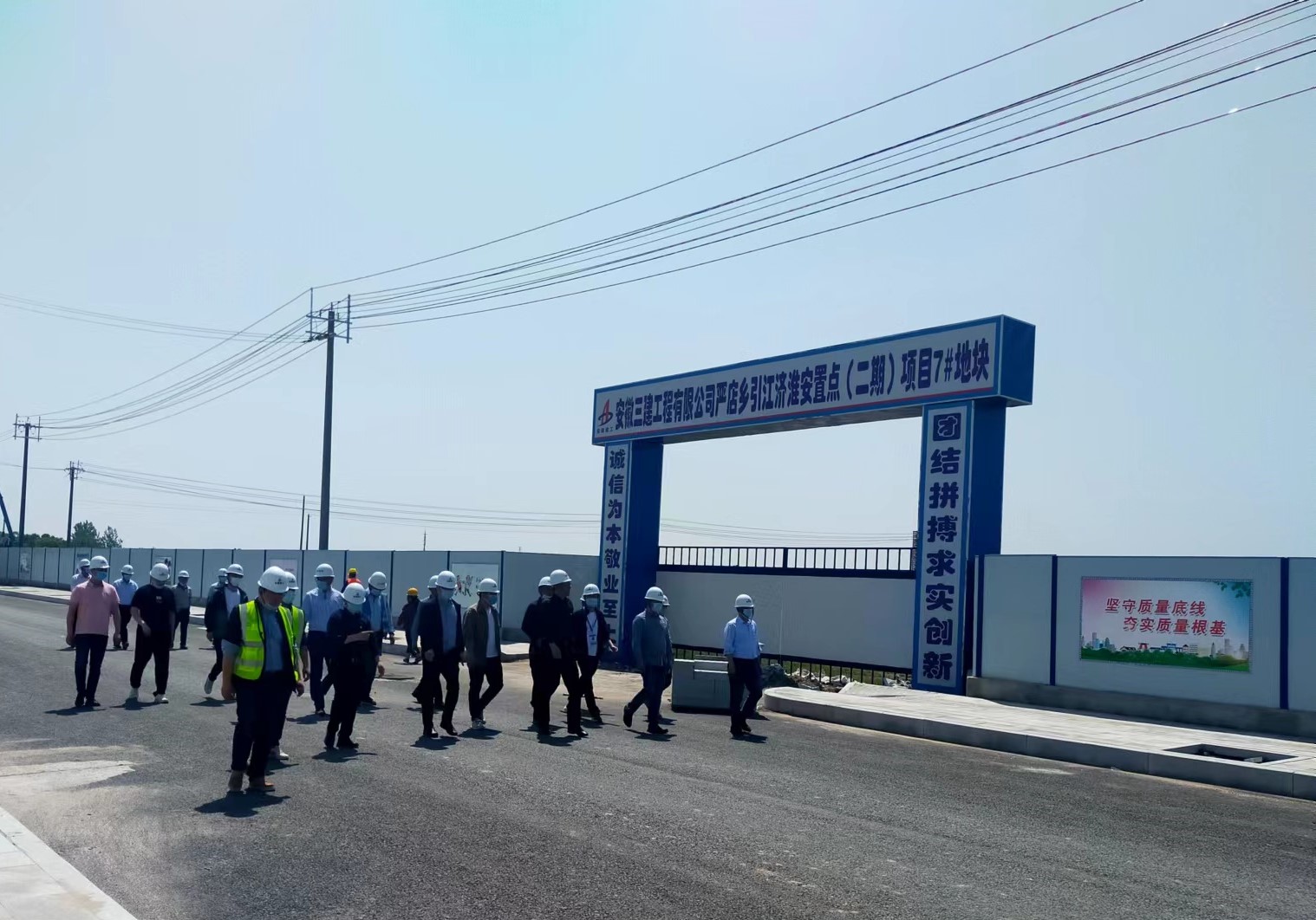 會議上,陳峰在認真聽取了項目工作匯報后,對安徽三建的企業風采與項目目前的施工成果表示了肯定,對今后的施工進度進行了計劃與部署,并在會后對施工現場存在的拆遷、道路問題進行了實地查看。
