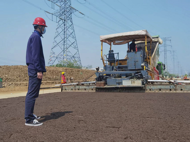 (舒王臺路項目水穩攤鋪現場)