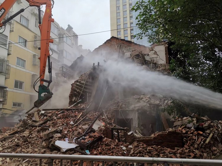 5月10日上午,合肥市蜀山區南七街道聯合城管、市場監管、應急、公安等部門開展拆除行動,建機家園小區“單身樓”周邊拉起了警戒線,道路口和單元樓出入口處均安排人員值守,建機公司人員協助街道工作人員對樓內居民及其物品進行勸導和搬離,一切就緒,挖掘機、灑水車現場作業,伴隨著一陣陣轟鳴聲,一棟紅色磚墻的三層樓順利被拆除。