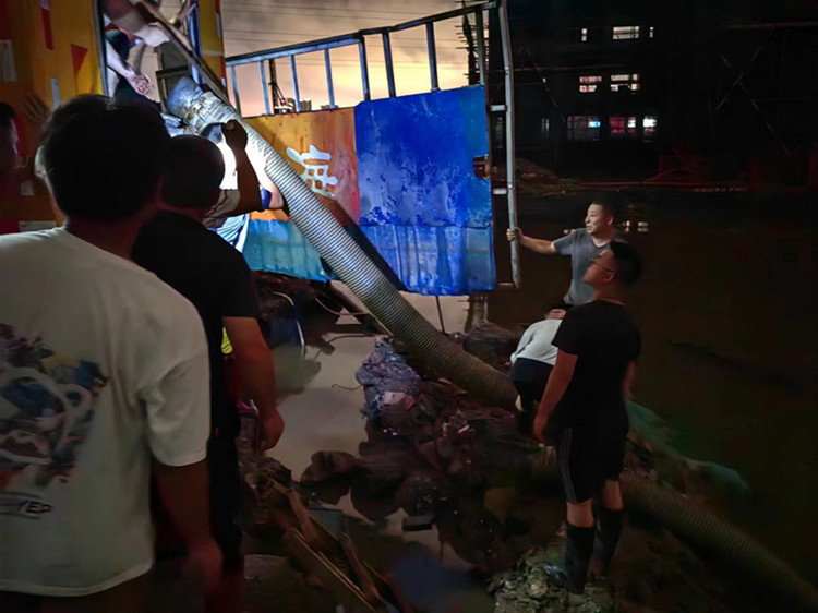 為盡快恢復生產,項目經理汪義善同志第一時間到達現場,立即組織管理人員,找來潛水泵、排水管、編織袋、鐵鍬等排水工具,進行搶險自救。在這場搶險的過程中,黨員、干部身先士卒帶頭搶險,每一名管理人員也都是好樣的,他們24小時輪流值班,有的管理人員衣服濕透,手腳被雨水泡腫,身體多處擦傷等,但他們都顧不上這些,為確保積水迅速排掉,仍然堅持戰斗,彰顯了安徽三建人吃苦耐勞的精神。經過連續多天日夜奮戰,該項目積水已經減少很多,施工現場設備和材料目前沒有造成實際損失。