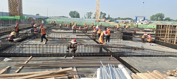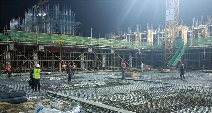 入夏以來,合肥市持續(xù)高溫給現(xiàn)場施工增添了很大難度,在保障現(xiàn)場施工不停滯的同時做好工人的身體健康管理,項(xiàng)目立即調(diào)整現(xiàn)場作業(yè)時間,“休中間,戰(zhàn)兩邊”。晨光熹微,工人同志已經(jīng)熱火朝天地進(jìn)行現(xiàn)場建設(shè);晚霞滿天,工人同志又開始晚間時段的搶工建設(shè)。為確保八地塊1#樓人防底板鋼筋順利通過驗(yàn)收,棟號長組織班組每天施工到深夜,為勞務(wù)工人提供水和泡面,人性化的服務(wù)充分調(diào)動工人的積極性,最終,人防驗(yàn)收按時完成,順利通過驗(yàn)收,施工質(zhì)量還得到了人防站的認(rèn)可。