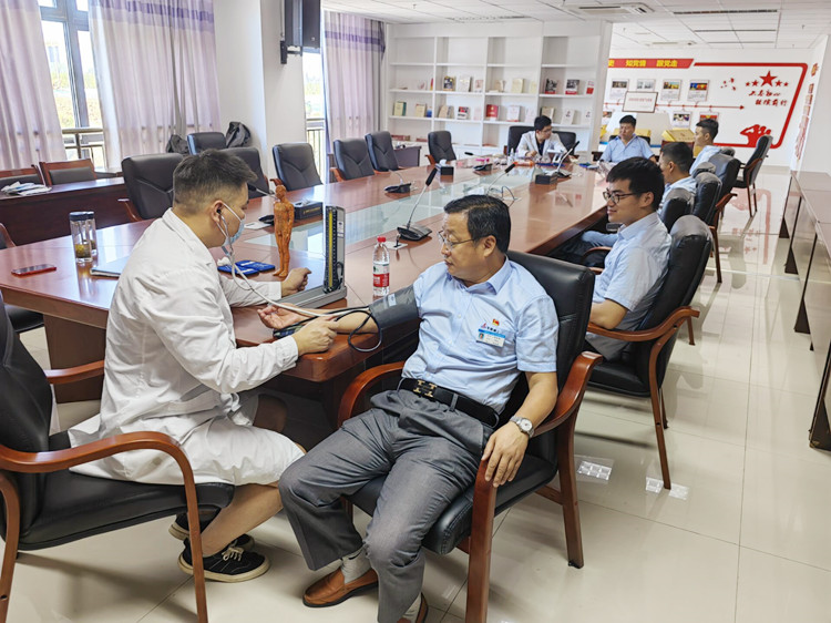 8月8日,本周高溫來襲,為落實健康企業建設要求,持續關注廣大職工身體健康,提高員工健康養生觀念以及對自身健康情況的了解。北城工業公司工會特邀中醫學院王磊博士、周成碩士來我司為員工開展為期一周的“亞健康”診療活動。幫助職工實現身體健康“早預防、早調理、早康復”。