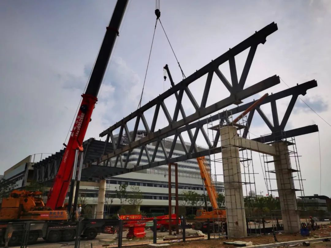 8月21日,隨著最后一榀桁架就位,安徽三建十公司長豐縣北城醫(yī)院一標(biāo)段南北區(qū)鋼連廊雙向桁架成功與二標(biāo)段連通。此次連通標(biāo)志著長豐縣北城醫(yī)院一標(biāo)段重大危險源已消除、施工重難點(diǎn)全部結(jié)束。
