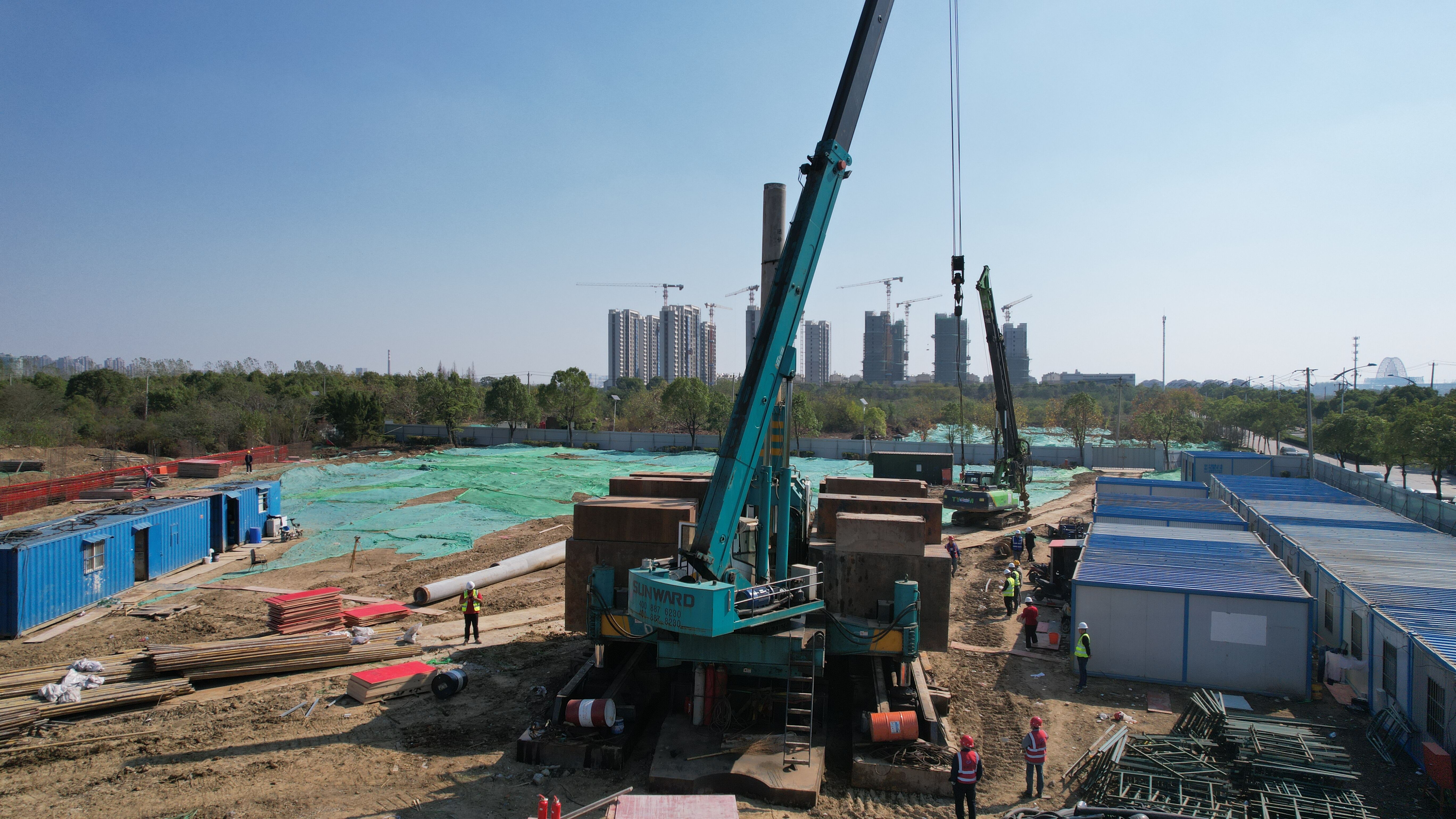 合肥一中淝河校區項目在做好疫情防控的前提下,如火如荼地開展施工作業,工作人員不畏艱苦,攻堅克難。12日上午,第一根試樁開始進行打樁,施工現場其他工作也在有序進行中。