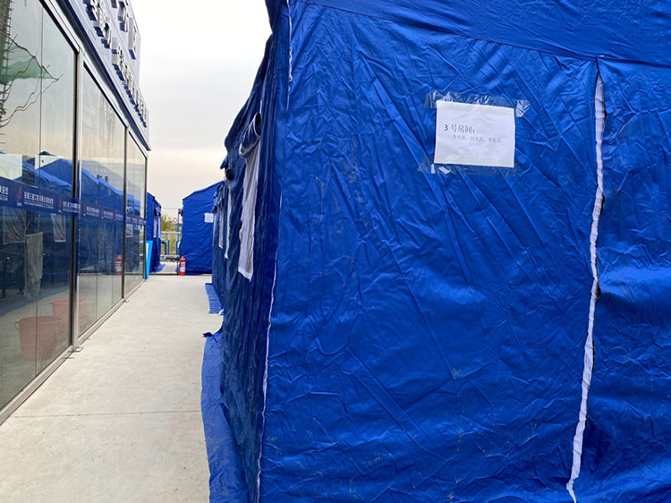 期間,項目加強對務工人員的日常疫情管控,嚴格落實核酸檢測、健康管理、制定應急預案等防疫措施。為保證項目安全生產,在辦公區附近搭設10余個帳篷,為一線班組提供臨時住所,并為其解決就餐、洗漱等問題。既不耽誤一線班組因防疫而造成務工困難,又為項目安全生產提供了強有力的生活保障,在班組中好評不斷。