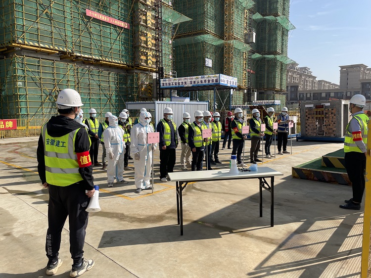 為檢驗項目對突發(fā)疫情的應(yīng)急處理能力,10月24日,七公司天長恒大項目開展疫情突發(fā)事件應(yīng)急演練。