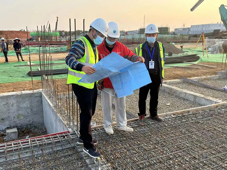 安徽大學江淮學院新校區項目克服疫情期間勞務人員、建筑材料緊缺等困難,科學組織施工、合理調配資源、嚴守防疫底線,項目經理張付川同志連續一個多月堅守工作崗位,即使在現場巡查中扭傷了右腳,依舊沖鋒在前。截至目前,項目23個建筑單體大部分已進入基礎施工階段,其中研究生、留學生公寓1#和2#樓已經率先沖出正負零,進入到一層主體結構施工階段。