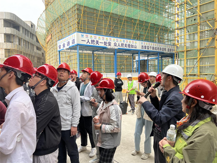 緊接著,項(xiàng)目管理人員帶領(lǐng)同學(xué)們走進(jìn)施工現(xiàn)場進(jìn)行實(shí)地了解,為大家講解項(xiàng)目重難點(diǎn)施工過程和項(xiàng)目亮點(diǎn),大家切身感受著現(xiàn)場的施工氛圍和各崗位間的密切配合,對(duì)自己的未來職業(yè)規(guī)劃有了更加明確的認(rèn)知。之后,項(xiàng)目管理人員與師生開展了友好交流,鼓勵(lì)同學(xué)們好好學(xué)習(xí)土木工程專業(yè)知識(shí),了解建筑工程前沿技術(shù),畢業(yè)后努力為祖國基建事業(yè)做出貢獻(xiàn)!