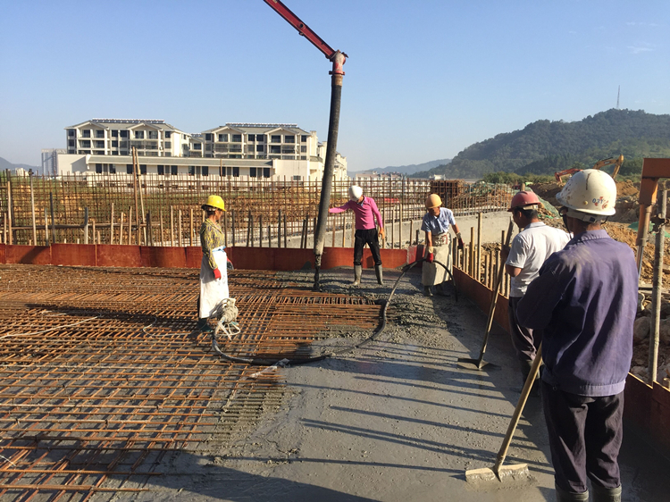 蕪湖公司宣城中梁宣督府項(xiàng)目、黃山恒大悅府項(xiàng)目、蕪湖奇瑞龍湖灣項(xiàng)目為抓緊國(guó)慶期間的有利天氣加班趕工。圖為黃山恒大悅府項(xiàng)目10月1日澆筑地庫(kù)筏板。
