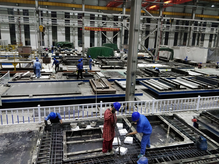 為配合沁園、康利園等項(xiàng)目項(xiàng)目進(jìn)度要求,工業(yè)公司國(guó)慶節(jié)期間,各生產(chǎn)線活力全開,根據(jù)項(xiàng)目現(xiàn)場(chǎng)需求適時(shí)調(diào)整生產(chǎn)線。圖為9月30日深夜降臨,還有10分鐘就是祖國(guó)第六十九個(gè)生日,建筑工業(yè)公司職工進(jìn)行墻板生產(chǎn)。