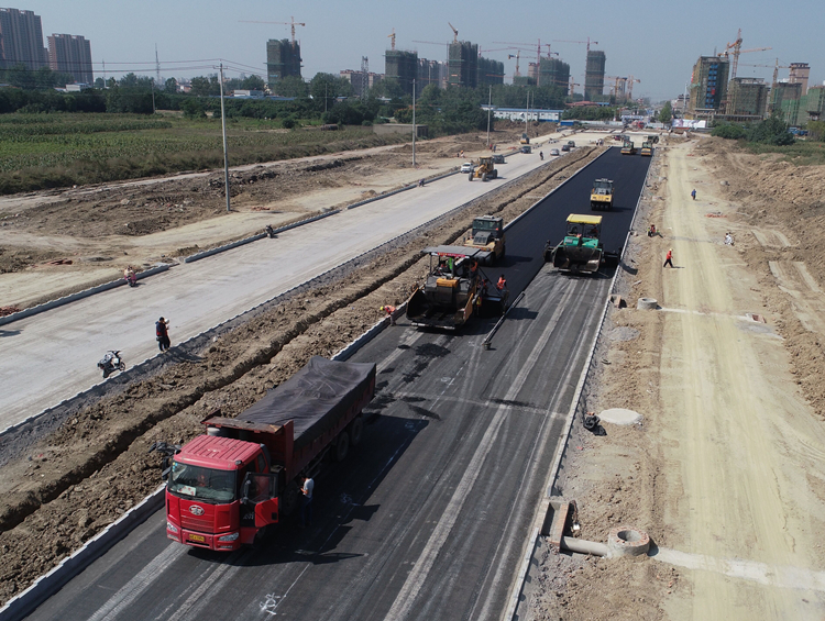 市政公司國(guó)慶期間項(xiàng)目生產(chǎn)現(xiàn)場(chǎng)依然火熱,阜陽(yáng)北京西路項(xiàng)目、山東省菏澤市長(zhǎng)沙路項(xiàng)目、利辛縣長(zhǎng)春東路等項(xiàng)目雨水管道安裝、檢查井砌筑、石方段開挖、瀝青攤鋪、碎石墊層施工如火如荼。圖為利辛縣長(zhǎng)春東路項(xiàng)目瀝青攤鋪施工中。