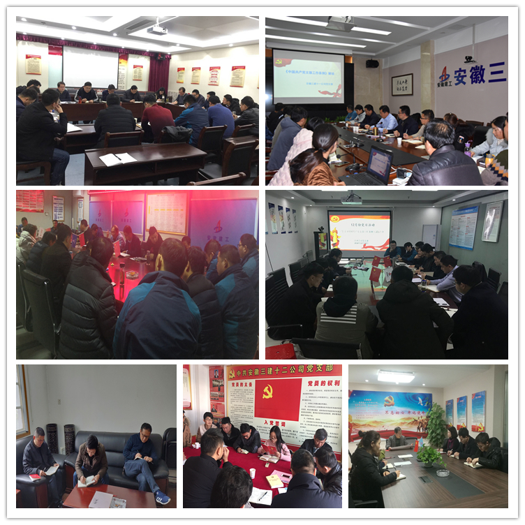 黨的十八大以來,以習近平同志為核心的黨中央高度重視黨支部建設。10月28日中共中央頒布實施《中國共產黨支部工作條例(試行)》,安徽三建公司黨委高度重視,在公司內部迅速組織開展《條例》的學習宣貫工作。12月6日,在公司黨委組織開展的政工干部培訓班上,公司黨委副書記黃麗春帶領安徽三建100多名政工干部學習《條例》內容。11月28日至12月20日,安徽三建27個黨支部先后集中組織學習了該條例。各支部委員、黨員、入黨積極分子以及部分關鍵崗位人員等600余人參加了集中學習活動。
