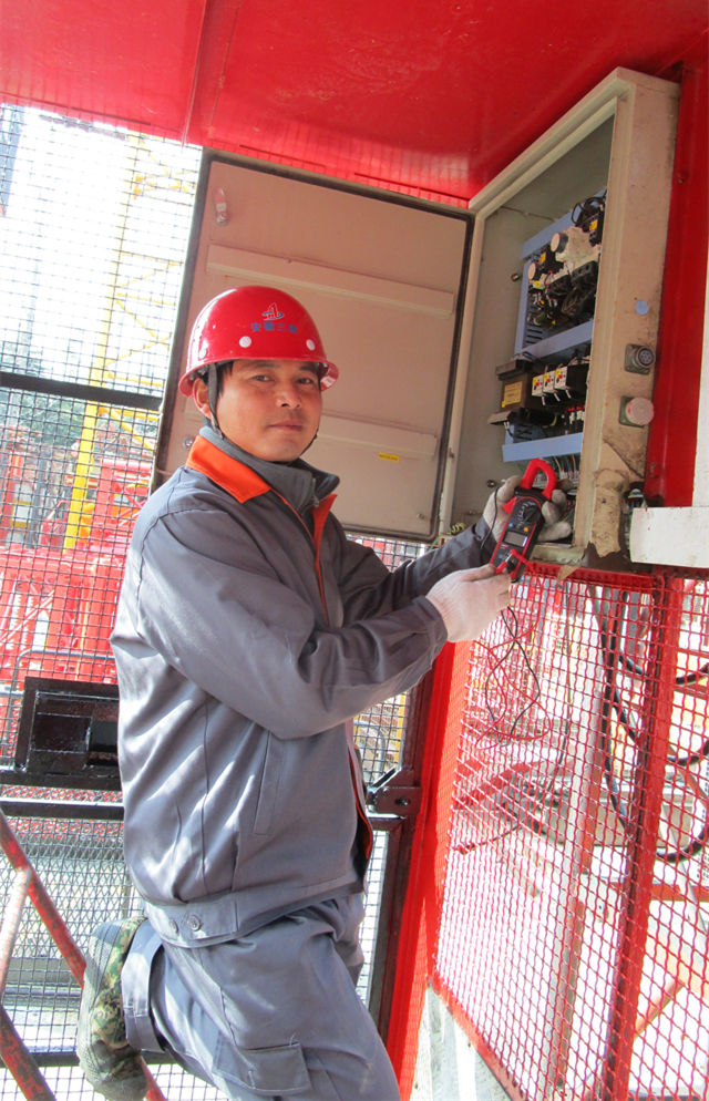 現在塔吊、電梯等大型設備型號多而繁,施工電梯更是經常因電路設備的更換,致使原來的電路圖不準確,他不斷創新工作方法,用手工繪制新的電路貼在電器防護箱外面,便于施工人員的掌握操作。對待平時的的工作,他更是只要設備哪里有問題,他就修到哪里,總是最快解決現場問題。一次六安恒生陽光城電梯起動打滑,他就在主電源的剎車上面,另加線路保護,避免籠子滑落現象,解決電梯后顧之憂。2017年,他修理設備510多次。他肯動腦筋,做事愛捉摸,用創新工作方法,給電梯的每條線路編號,極大提高了工作效率。