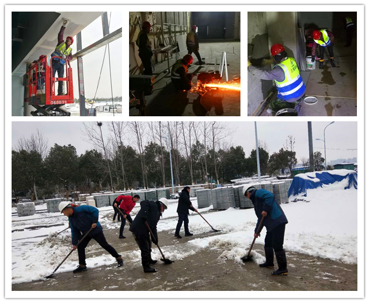 經過一夜的大雪,2月8日大年初四的安徽創新館項目披上了一層白衣,當全國人民還沉浸在歡度春節的喜慶氛圍里,百余名施工人員已經在項目施工現場緊張而有序的忙碌。為了全面貫徹落實集團公司一屆六次職代會精神,完成2019年集團公司的既定目標,保障工程進度和更好地推進項目建設工作,和安徽創新館一樣,安徽三建的許多項目部和工作崗位已經陸續提前復工,各項工作也在有序開展中。截止到2月16日, 四公司、八公司、九公司、安裝公司、基礎公司以及西北公司、海南公司等數十個項目已經提前復工,投入到緊張的建設中。大家力爭為2019年各項工作開好頭,為實現完成全年目標奠定基礎。