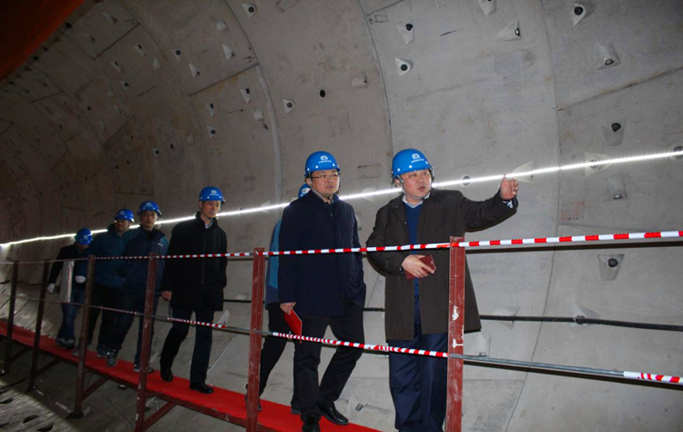 下午觀摩團抵達六公司軌道交通4號線4標段項目。何洪春率觀摩團沿著軌道步行至盾構機頭掘進的位置,現場了解盾構機掘進過程中土方的出土方式、管片的安裝方法以及注漿施工工藝;聽取了軌道交通各施工部分情況的介紹。