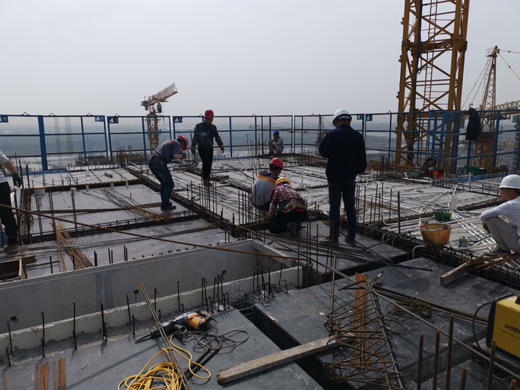淮南恒大御府首期(一標(biāo)段)項(xiàng)目:五月1號清晨,天空還在下著小雨,14#樓西單元13層鋼筋工、木工、水電工等冒雨在施工。該項(xiàng)目為了滿足業(yè)主工期要求,爭取在雨季到來之前多創(chuàng)產(chǎn)值,項(xiàng)目部全體職工搶時間、爭主動,“五一”期間,施工現(xiàn)場是一片緊張忙碌的大干場面。當(dāng)晚,夜間各樓棟依然積極組織加班,3#樓木工班組為了不影響進(jìn)度,加班至夜間十點(diǎn)終于完成高低跨部位吊模。
