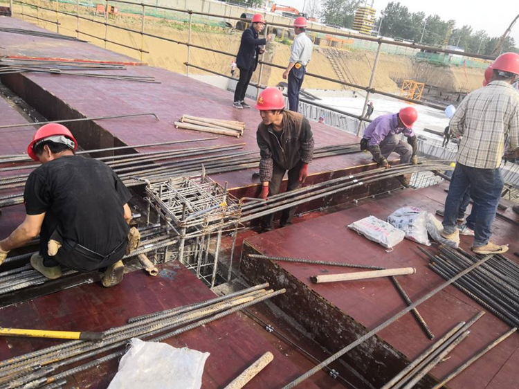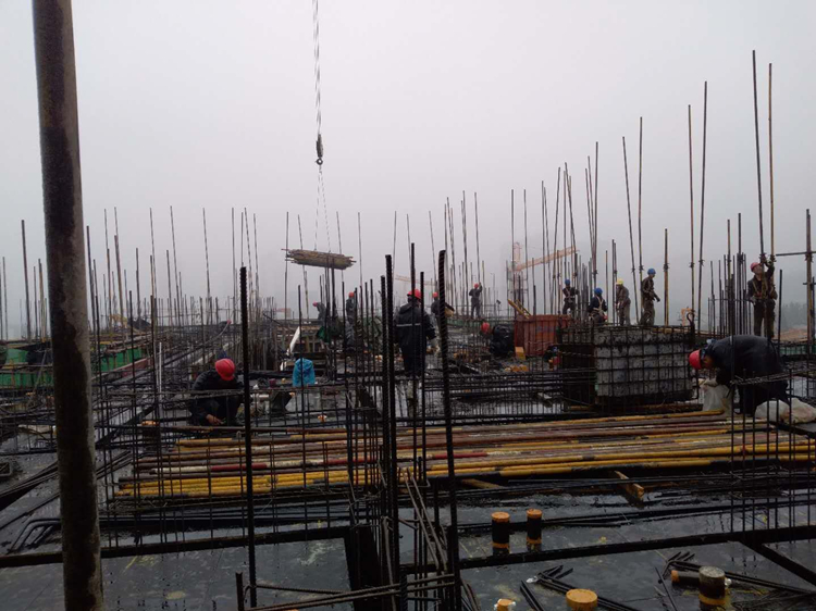 5月2日,十一公司天長恒大I標(biāo)項(xiàng)目班組綁扎基礎(chǔ)承臺鋼筋。