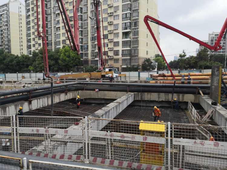 2019年5月30日,隨著最后一倉車站頂板混凝土澆筑完成,由安徽三建承建的合肥地鐵4號線4標段呈坎路站實現(xiàn)主體結(jié)構(gòu)封頂,這是合肥軌道交通4號線31座車站中第14座主體封頂車站。至此,公司承接的兩站全部實現(xiàn)了主體結(jié)構(gòu)封頂。