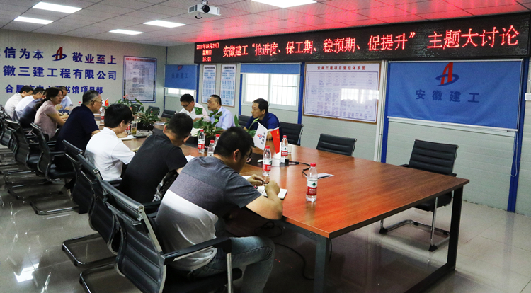 為牢固樹立“不能按時交工為恥辱”的履約意識,廣泛收集促進工期的意見建議,作為集團“搶進度、保工期、穩預期、促提升”勞動競賽活動的重要組成部分,9月29日下午,安徽建工集團控股有限公司在安徽三建公司合肥市中心圖書館項目部會議室,組織開展主題大討論活動。集團公司工會副主席李世龍、工程管理部副部長葛輝,安徽三建公司副總經理張斌、工會主席李家保,技術質量部、工程管理部、安全生產管理部負責人,各分公司在合肥地區標桿項目負責人、部分黨支部書記代表等共計30余人參加會議,會議由公司工會副主席馬榮琳主持。