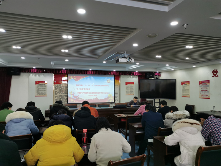 1月8日上午,安徽三建六、七、八、九、十公司黨支部于香楓創意園22樓黨員活動室開展“三個以案”警示教育,并集中組織黨員職工學習《中國共產黨國有企業基層組織工作條例(試行)》,共計30余人參加