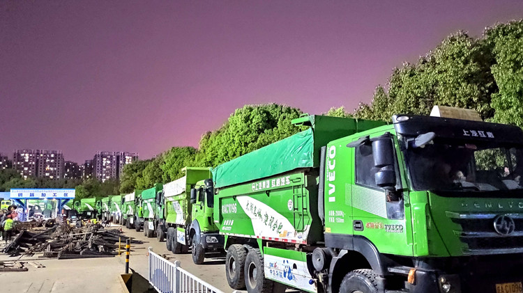 4月9日凌晨三點半,2019年新進場大學生吳培,目送最后一輛渣土車駛出安徽三建合肥市中心圖書館項目大門,收回了爆閃燈、警示牌等土方外運設施后,回到了辦公室在施工日志上記下:“今日投入外運車輛49臺,外運土方227車,4000方”結束了一天的工作。