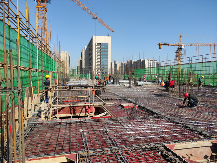 八公司合肥市二院、黃麓師范學(xué)院、臨泉銀杏苑、臨泉十中、合肥市圖書館等項目設(shè)者以高昂的斗志、火熱的激情,奮戰(zhàn)在復(fù)工復(fù)產(chǎn)的第一線,加班加點,用實際行動詮釋著“勞動最光榮”。圖為合肥市二院項目職工正在進行5#樓六層鋼筋綁扎工作。