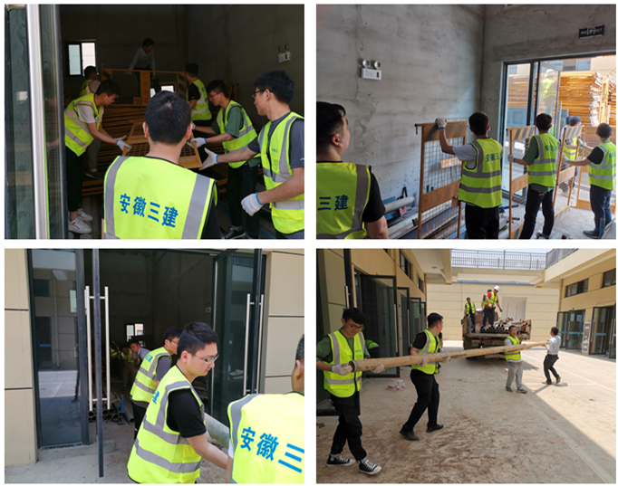 五一期間,蕪湖分公司組織機關(guān)及各項目青年職工支援高速東方御府項目搬運定型化防護材料、泵管及鋼筋防護棚立柱。