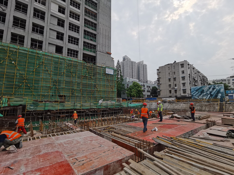 五一期間,七公司主要項目均加班加點趕超工期,項目管理人員采取輪休的方式保證工程進度。圖為天長恒大項目組織管理人員15人,工人近300人,開展主題酒店基礎(chǔ)主體施工。自2020年3月份復(fù)工以來,該項目已完成產(chǎn)值約2200萬。