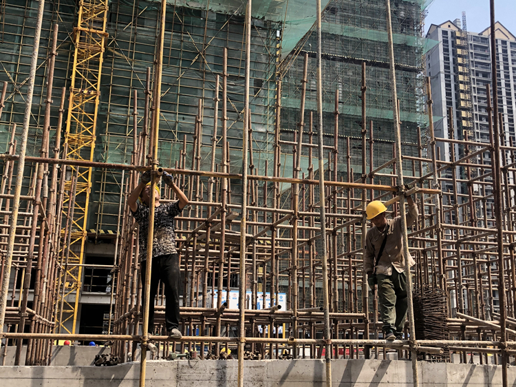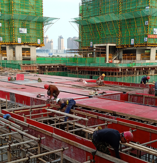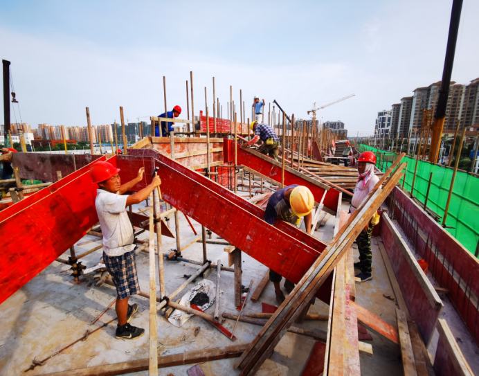 下午4點,室外溫度依然居高不下,在安徽三建五公司東城悅苑項目現場,工人師傅正在支模搶工期