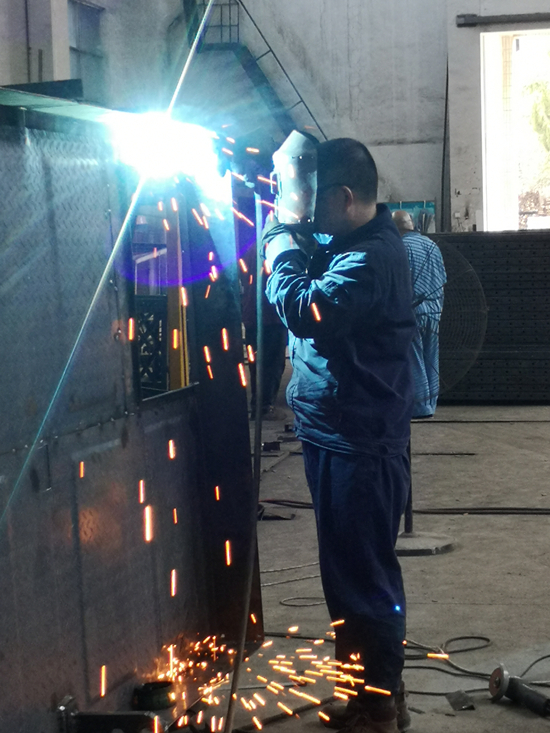連日來,輕鋼龍骨公司采取了多項措施戰高溫、保生產。一方面為車間班組發放了毛巾、風油精、人丹等防暑降溫物品和藥品;另一方面為各車間辦公室安裝了空調設施,供車間師傅乘涼、休息使用;此外,龍骨公司還加強車間班組人員用電、機械設備操作等安全教育,確保做到生產、人員安全,為廣大職工營造安全生產環境。圖為輕鋼龍骨公司二車間師傅高溫下穿著長袖工作服焊接人貨電梯產品。