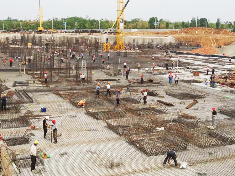 項(xiàng)目部首先遭遇的是史上最長(zhǎng)的梅雨季。連續(xù)雨天是基礎(chǔ)施工的天敵。常常剛挖出來(lái)的基礎(chǔ),一場(chǎng)急雨過(guò)后,積水淤泥遍布。迎難而上是安徽三建人的傳統(tǒng)。憑借多年的施工經(jīng)驗(yàn),項(xiàng)目部立即形成了一套應(yīng)對(duì)方案:配備了80臺(tái)大功率抽水泵,采取挖機(jī)配合人工清淤,確保基礎(chǔ)施工成效。小雨搶著干;大雨防積水;白天下雨晚上干,項(xiàng)目部日夜不停開(kāi)挖,確保了基礎(chǔ)施工進(jìn)度。