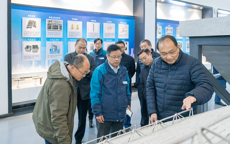 何向陽一行參觀了建筑工業公司生產車間,詳細了解了裝配式建筑固定模臺生產線、部品部件、軌道交通管片生產流程。在建筑工業公司綠色建造展廳,何向陽一行通過公司自行研發的Smart-PC智能化工廠大數據電子大屏,查看了企業部品構件生產動態、精準排產、堆場可視以及設備安全監控、成本自動核算等功能后,對工業公司在發展裝配式建筑和智能建造技術方面取得的成果給予高度贊揚,并表示希望進一步加強政企合作,建設更為廣闊的合作平臺,實現互利共贏、共同發展。